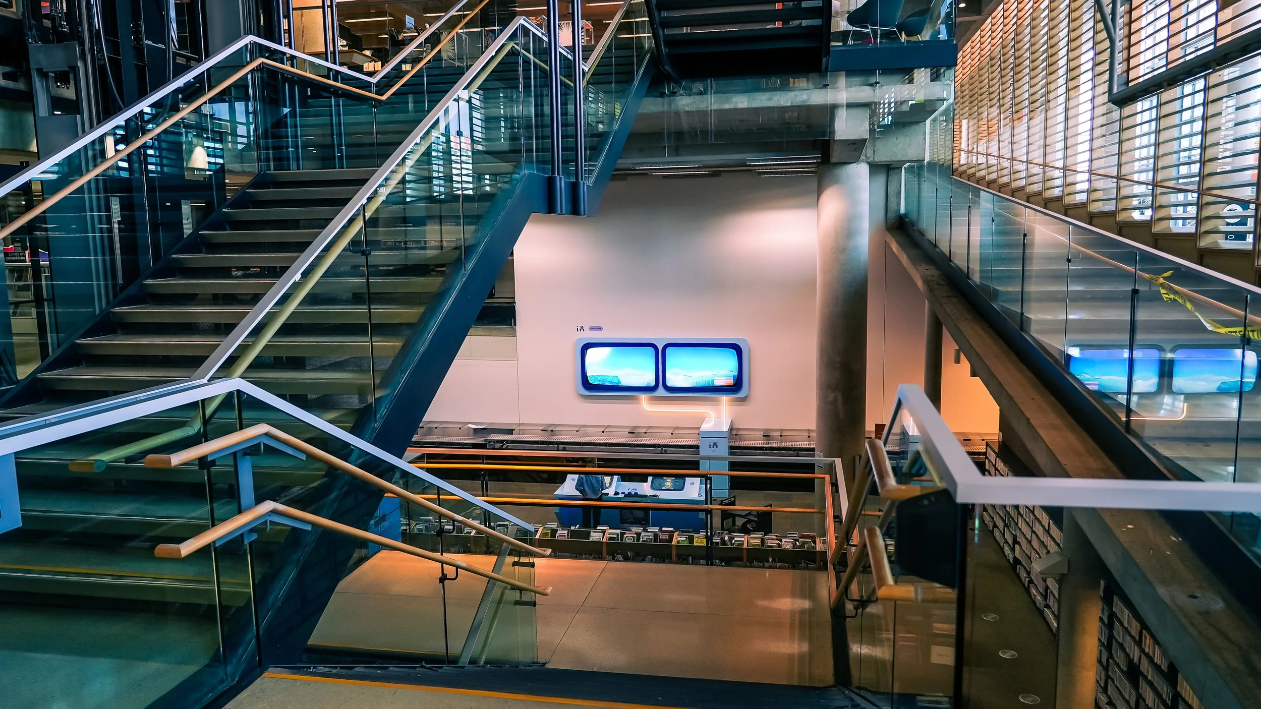 Le projet se déploie sous la forme d’un parcours non linéaire composé de plusieurs dispositifs interactifs, appelés « machines », répartis sur différents niveaux de la Grande Bibliothèque. Chaque machine permet de rendre perceptible une dimension intangible des collections par une interaction physique, spatiale ou sensorielle.