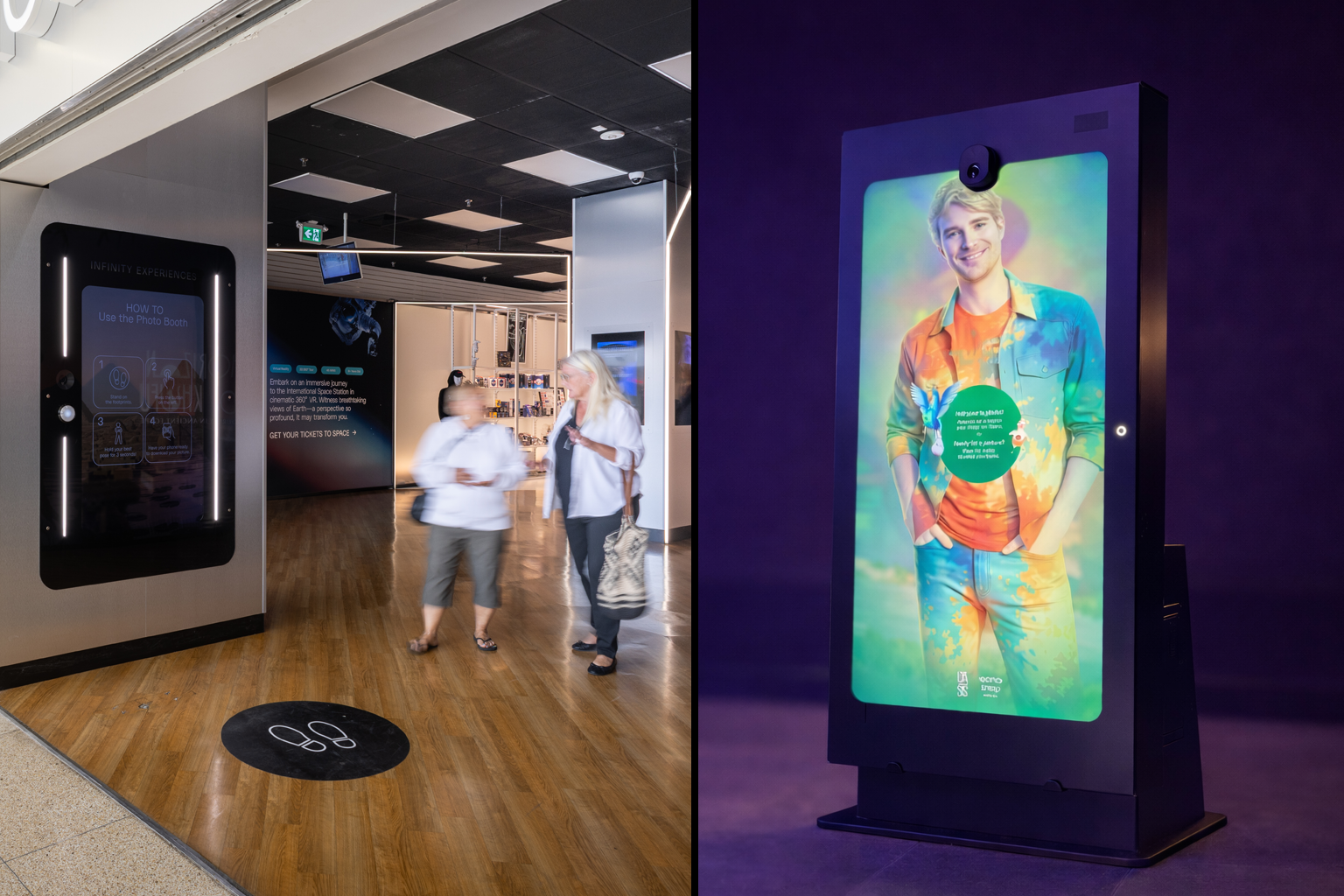 Interface d’expérience conçue pour être utilisée sur site (kiosque / mirror booth / stand) ou intégrable à des environnements de scénographie.